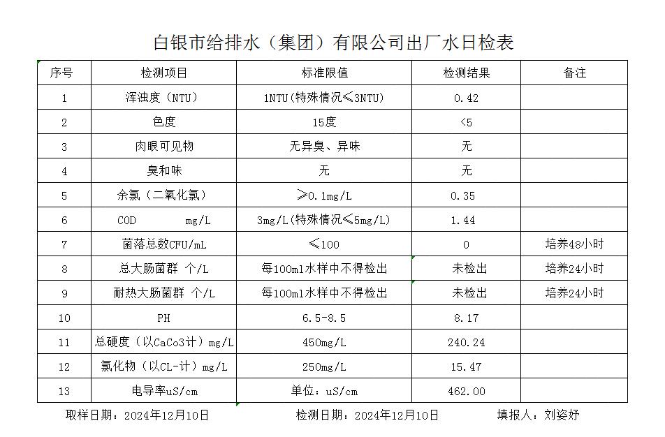 2024年12月10日水質(zhì)檢測報告